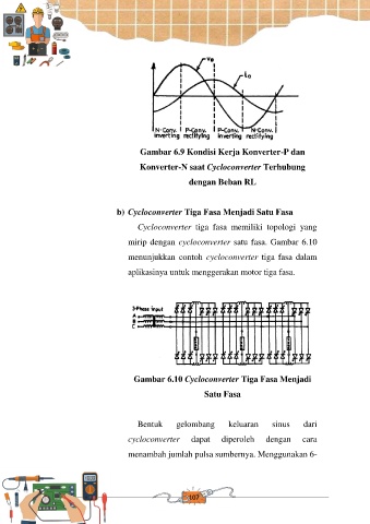 mirip dengan cycloconverter satu fasa. Gambar 6.10