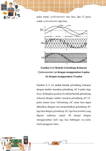 pulsa untuk cycloconverter satu fasa, dan 12 pulsa