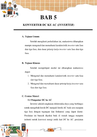untuk mengubah listrik DC menjadi listrik AC baik satu maupun